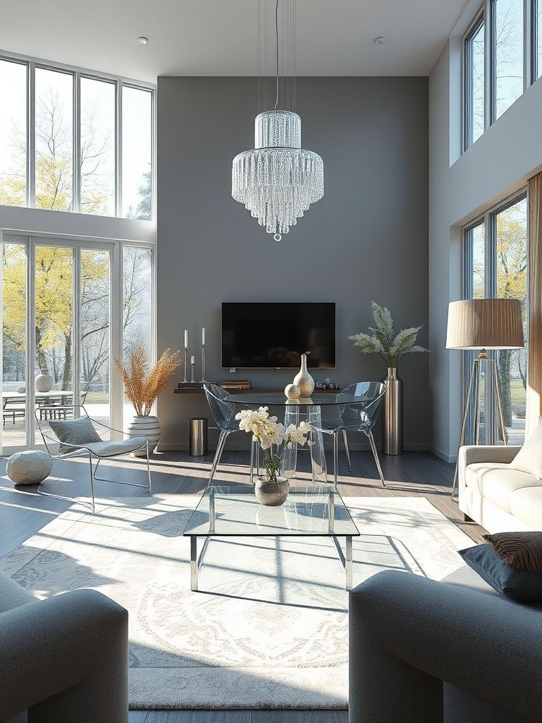 Glass coffee tables and shelving units are popular choices, often paired with metallic accents. Acrylic dining chairs are also trending, offering style without cluttering the visual space.
