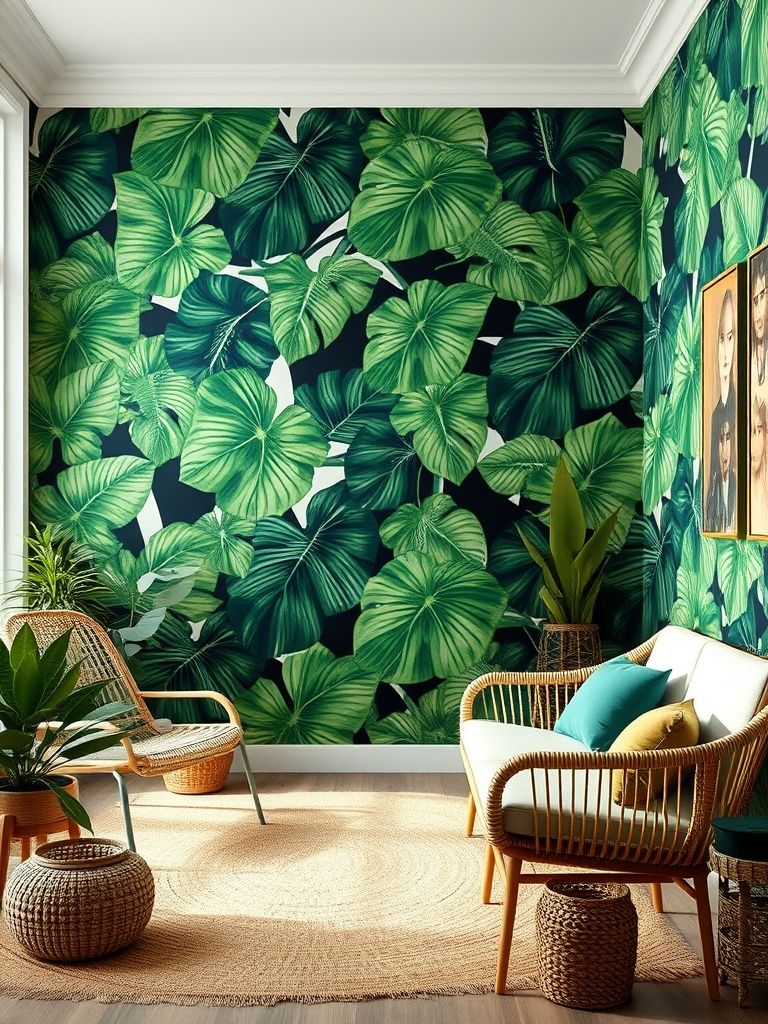 Pairing botanical wallpapers with natural textures enhances their impact. Wicker furniture, rattan lighting, or jute rugs balance the vibrancy of the prints. Greenery, whether real or faux, complements the theme and adds layers of depth.