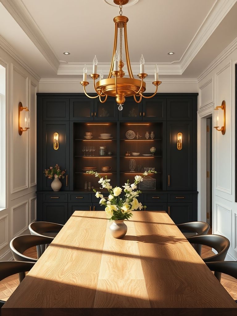 Lighting fixtures are often the starting point for mixed metallics. A chandelier in brass paired with chrome wall sconces feels fresh and intentional. Cabinet handles, faucets, and table legs in contrasting metals further carry the trend across the room.